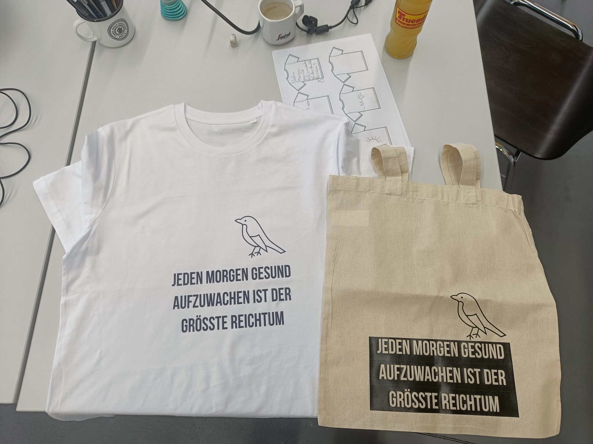 Der Tag begann mit einer kurzweiligen Präsentation, bei der es lebhafte Diskussionen zu den verschiedenen Zielen gab. Nach der Präsentation ging es an die praktische Arbeit. Ziel des Tages war, selbständig ein T-Shirt zu einem der Nachhaltigkeitsziele zu gestalten.